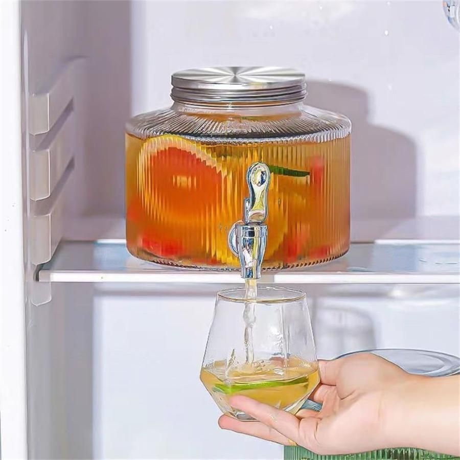 冷水筒 ドリンクサーバー 蛇口付き ガラス貯蔵タンク ドリンクディスペンサー 貯蔵タンクウォータージャグ用 クリア 果実酒びん 貯蔵ジャー