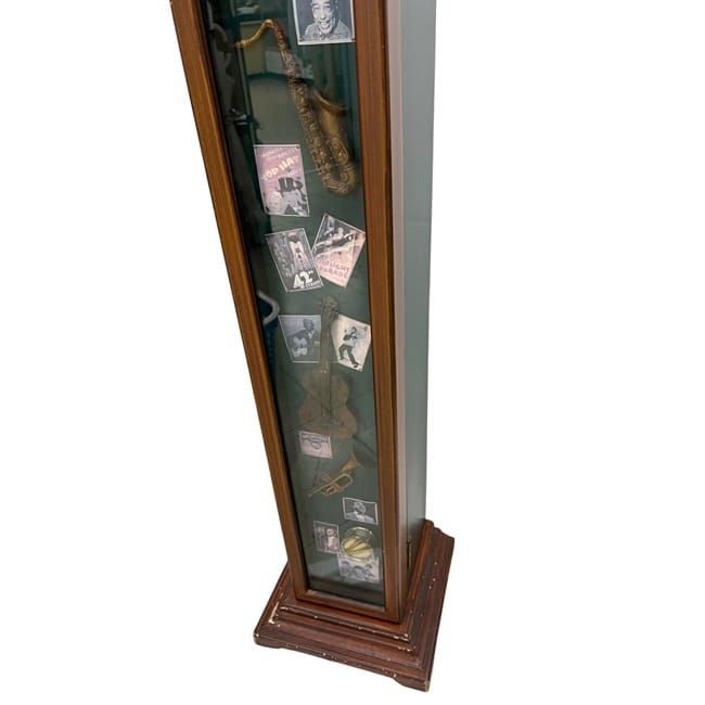 アンティーク 棚 ec-24155 ブラウン ラック 6段 収納 木製 ガラス 新品 ジャズ インテリア 家具 ヴィンテージ 縦長 飾り棚 扉付き 戸付き ウッド アンティーク家具 コレクション 趣味 飾り 収納棚 ギター サックス ビートルズ 昭和 ウッドラック 木 レア
