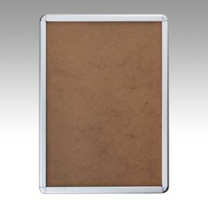 ●規格:B2判●収容寸法:縦728×横515mm●重量:2.7kg●フレーム幅:32mm●厚:21mm●収納可能厚:0.3mm●材質:フレーム=アルミ押出し型材,コーナー=ABS樹脂成型,表面シート=透明アクリル(1.5mm),背板=ハードボード(再生繊維板)