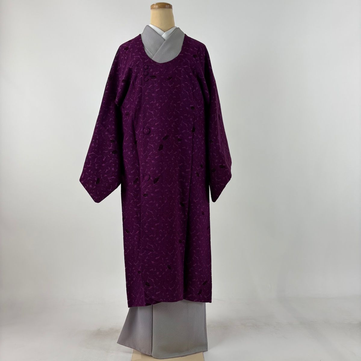 道行 身丈115 cm 裄丈65 M 和装コート 都衿 葉 紫 正絹