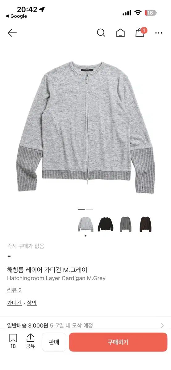 Hatchingroom レイヤー カーディガン M グレー