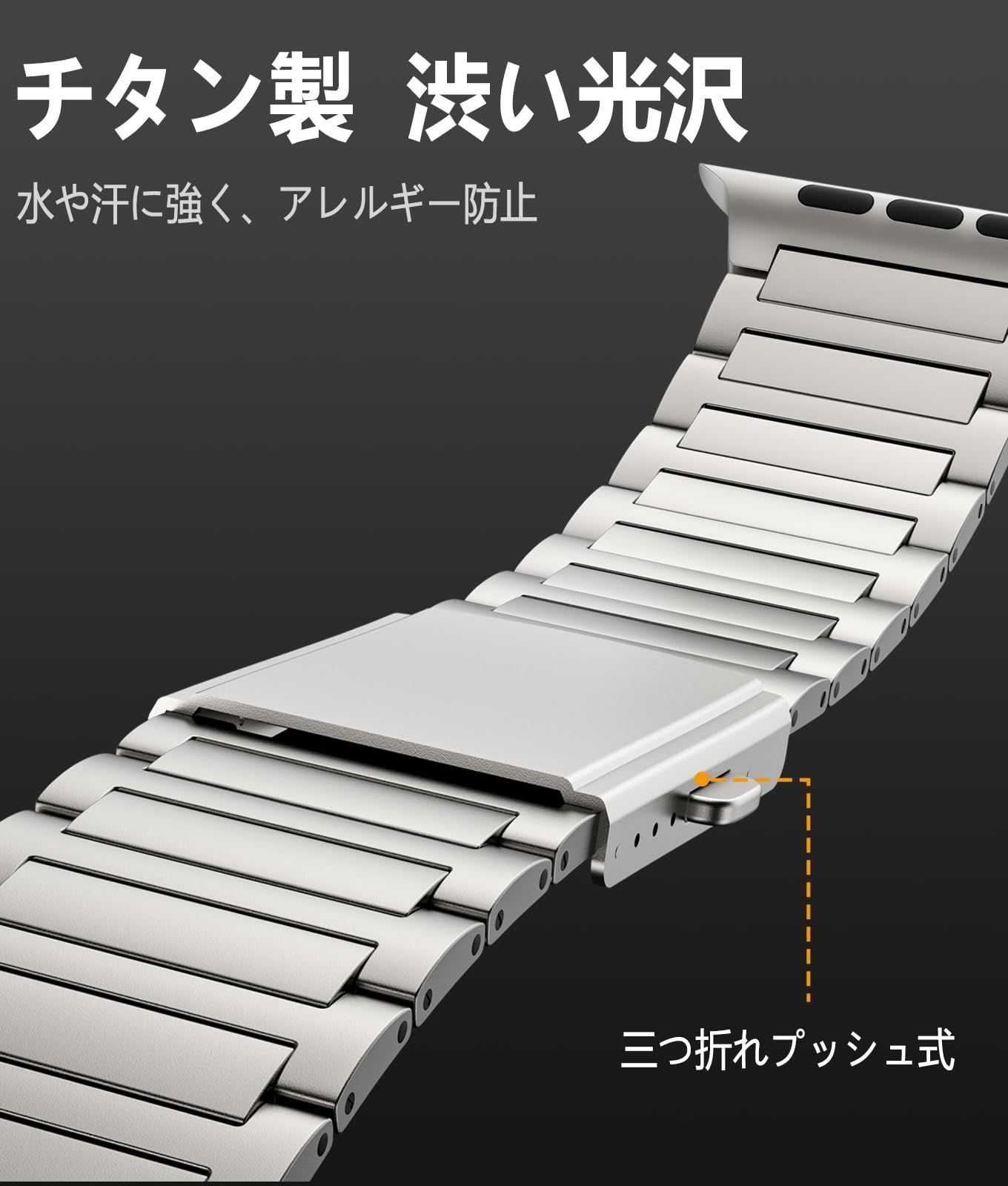 数量 49 mm Ultra 2対応交換バンド バンド 渋い光沢 チタン チタニウム金属 watch 三つ折れプッシュ式 調節 apple ビジネス風 軽量 アレルギー防止 コンパチブル アップルウォッチ Bandsie
