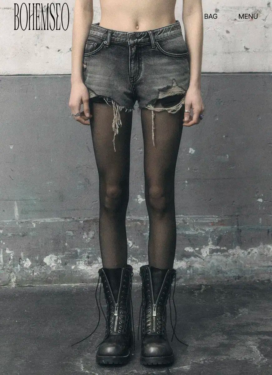 BOHEMSEO ボヘミアンソウル DESTROYED GRAY DENIM SHORTS