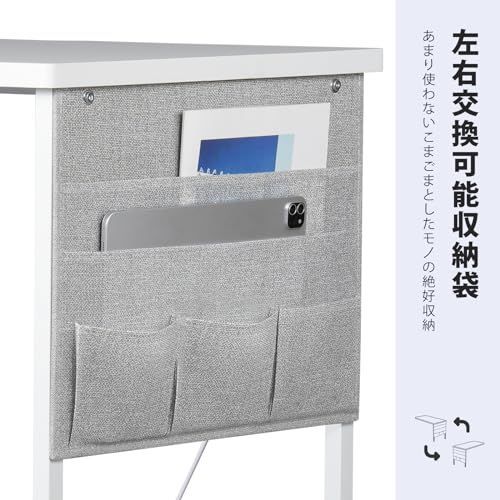 白い 80*40 【大きな作業台と収納スペース】デスクの上は大きいので,パソコンと周辺機器を並べて置くことができ、手元がゆったり使える広さがあります。デスクは丈夫な収納袋とフックが付いておりますので、書類、カバン、ヘッドフォンなどの収納がとても便利になり、天板がすっきり片付けられます。