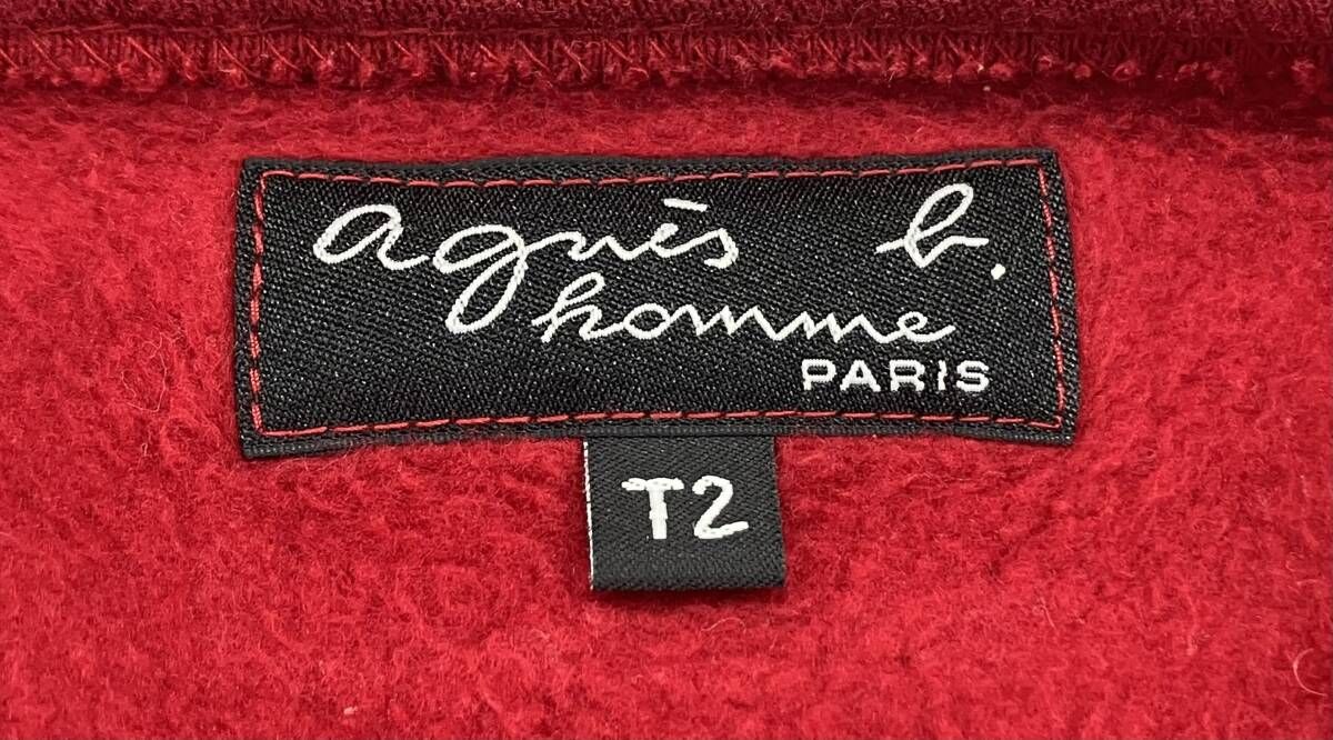 agnes b. homme アニエスベーオム 長袖カーディガン プレッション 綿 裏起毛 サイズ2 レッド 通年