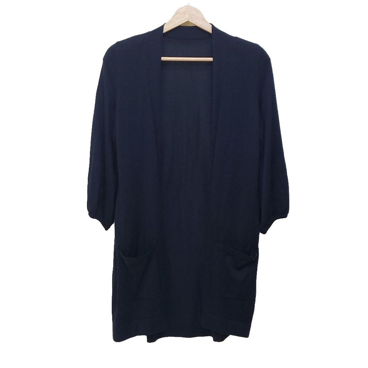 FOXEY フォクシー カーディガン レディース - 32714 ダークネイビー 長袖 カシミヤ シルク 肩パッド ロング丈