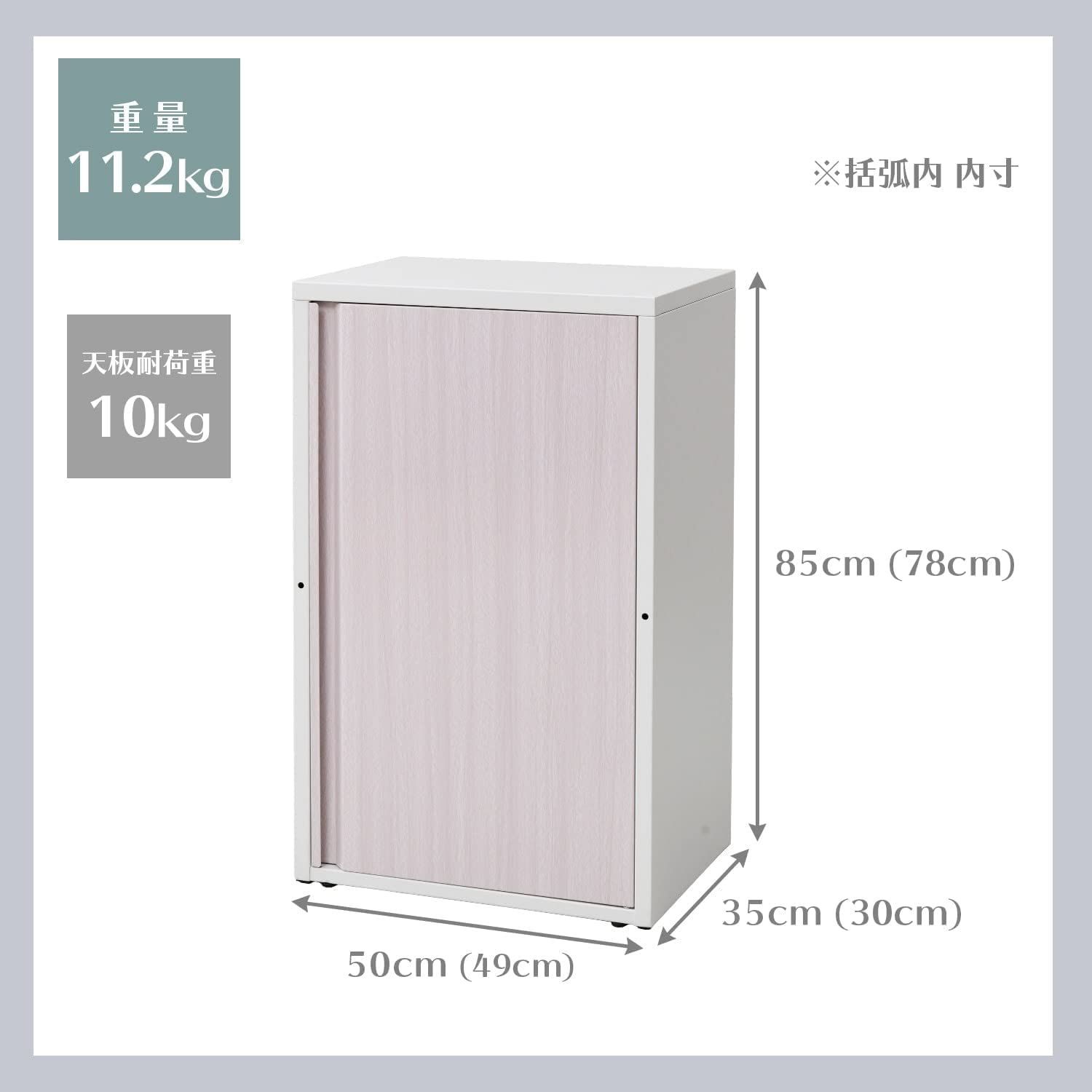 【仕様】本体サイズ:幅50×奥行35×高さ86cm 重量11.2kg、収納部内寸:幅49×奥行30×高さ78cm、可動棚2枚、組立時間:約20-30分、材質:スチール