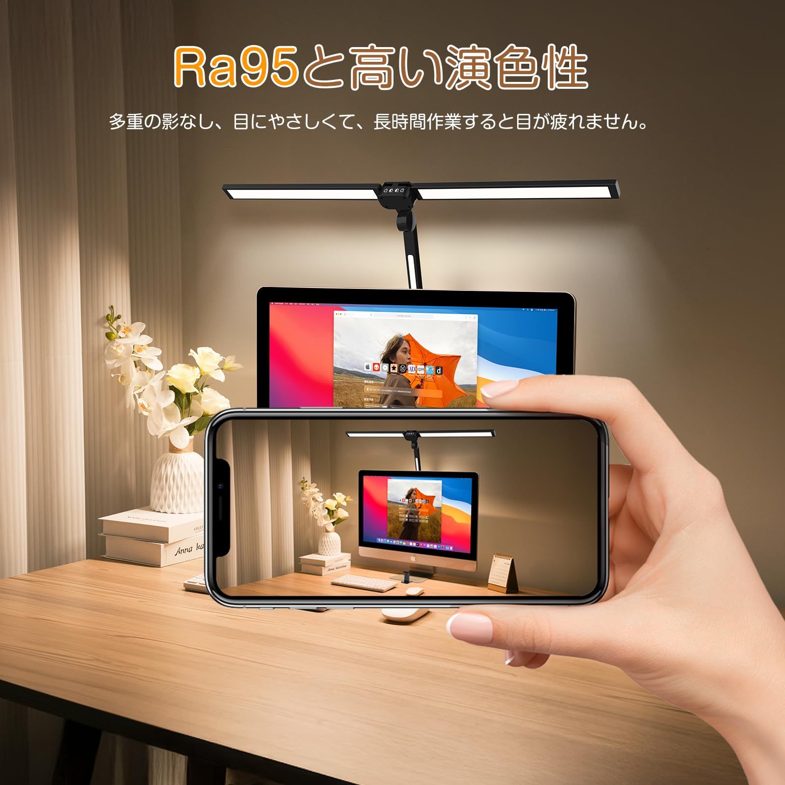 ?【目にやさしい&多重影なし】JIS規格AA形相当の明るさを謳っている、演色性の数値はRa95を超えるトップクラス。手元の影も、濃淡はあるものの多重感が気にならず、目にやさしいデスクライトといえるです。