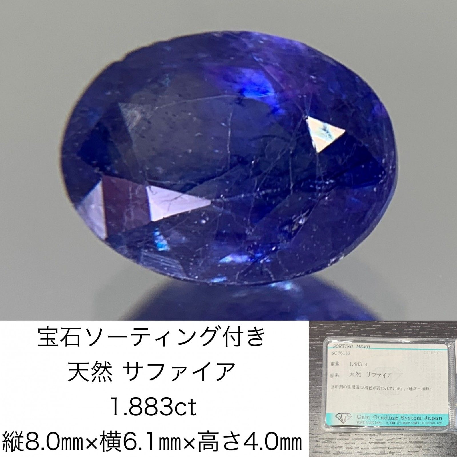 宝石ソーティング付き 天然 サファイア 1.883 ct 縦8.0㎜×横6.1㎜×高さ4.0㎜ ルース 裸石 2892 Y