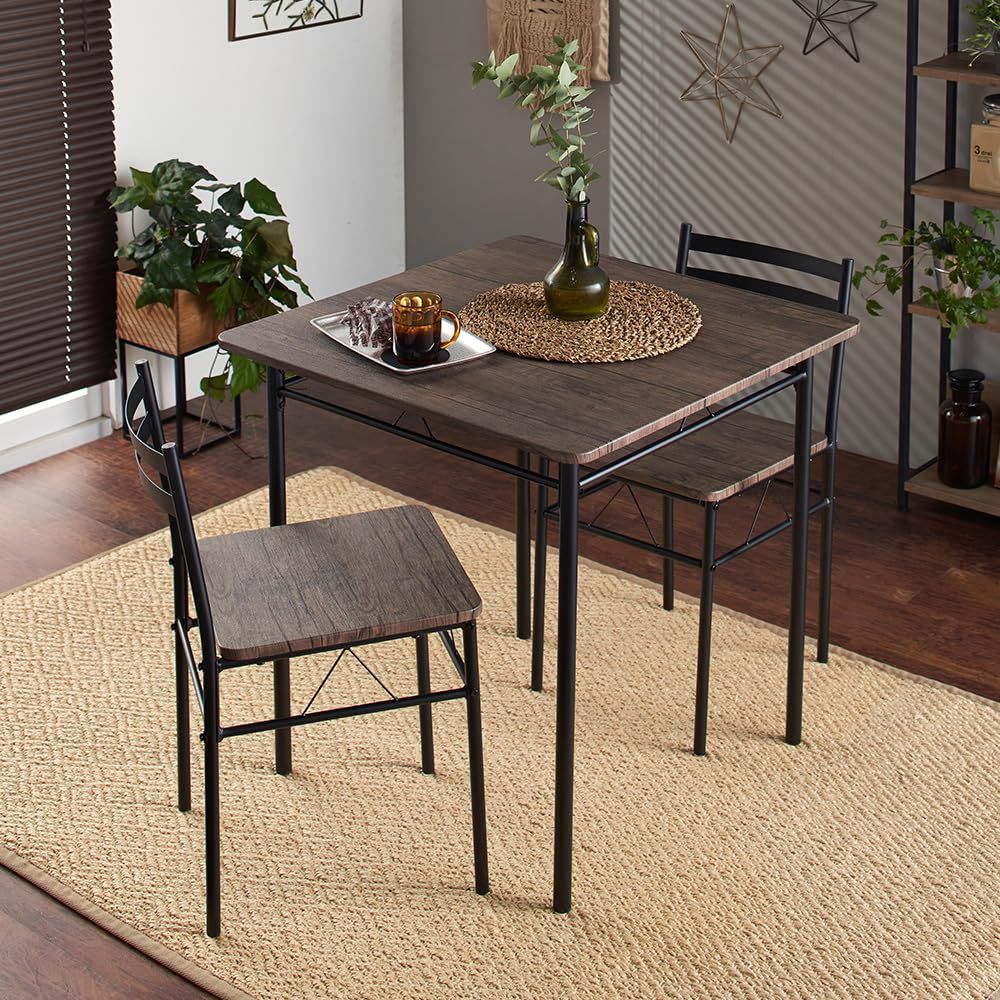 アイリスプラザ(IRIS PLAZA) ダイニングテーブル 2人用 3点セット 食卓 テーブル 幅70cm 1点 チェア 2脚 ブラウン 木目調 おしゃれ コンパクト 組み立て品 AS-V70