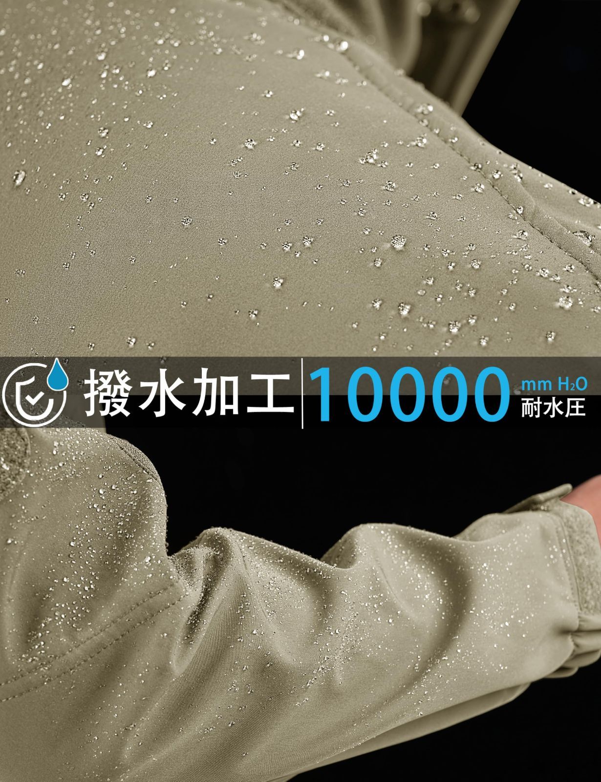 【高性能素材】耐水圧10000mm・透湿性5000g/㎡/24h。防水・防風に優れたソフトシェル生地は、摩耗に強く、適度なストレッチ性を兼備。アウトドアでの動きを快適かつ自由な動きをサポートします。