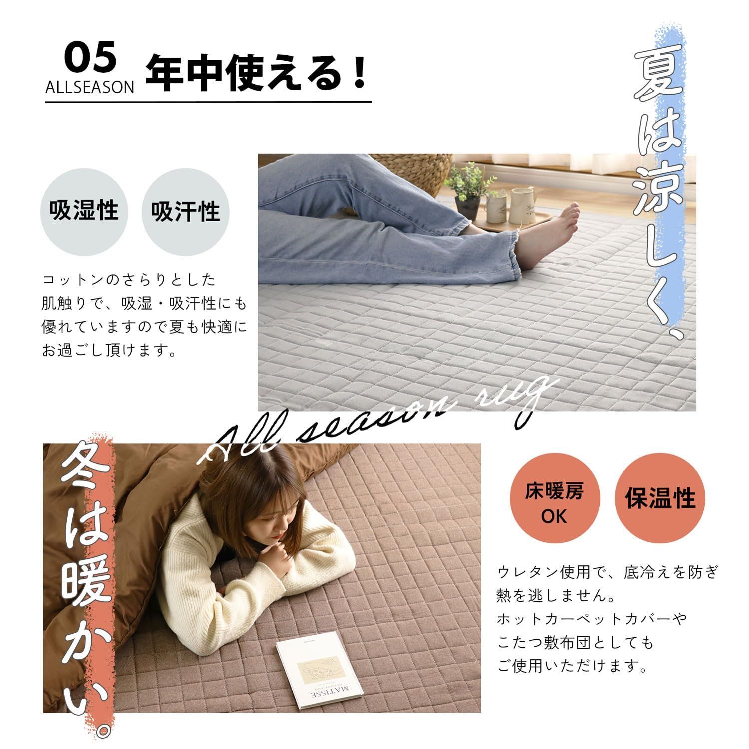 機能:オールシーズン使用可、防音、滑り止め加工、床暖房対応