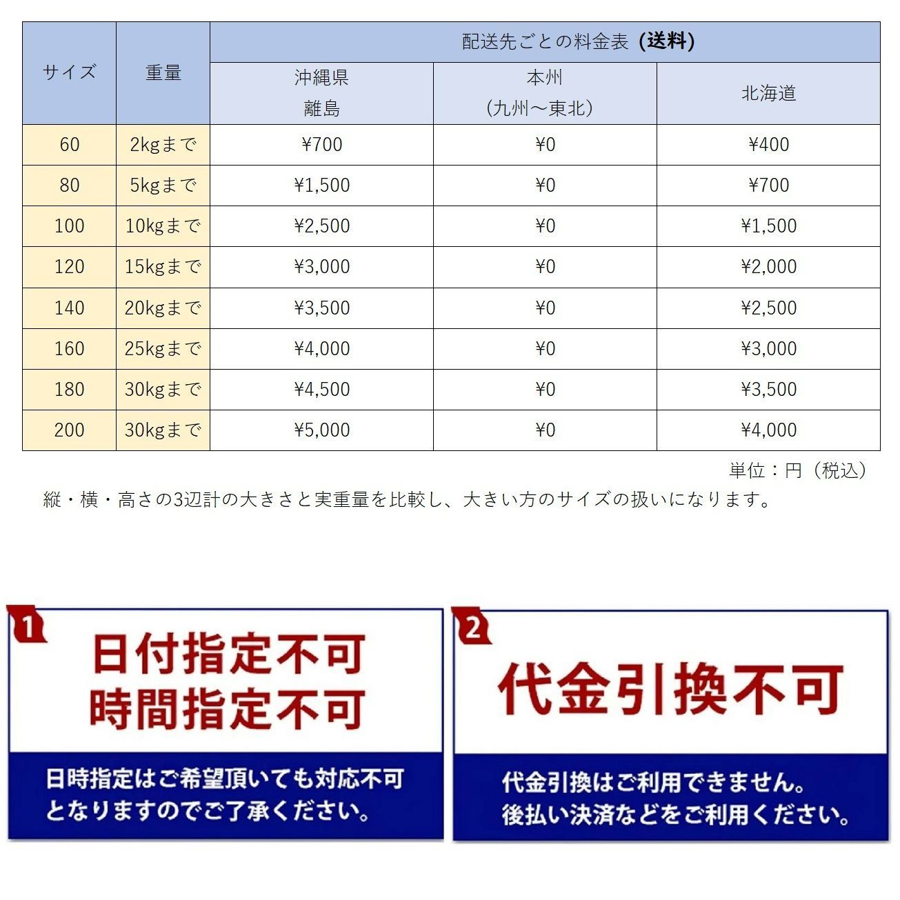 ※北海道・沖縄・離島へ発送できない規格外商品は注文キャンセルさせていただきます。