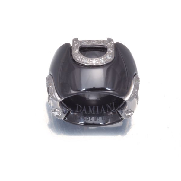 艶やかなブラックセラミックの輝きにDアイコンデザインをあしらったダミアーニのペンダントトップです。