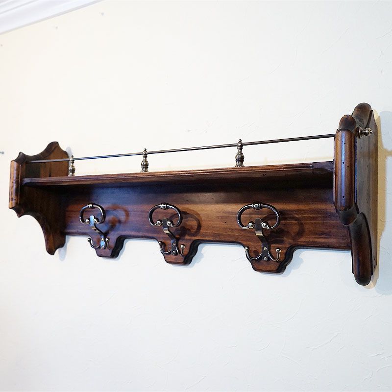 【商品名】ヴィンテージ USED イタリア製 コートハンガー 壁掛け コートハンガー 棚付き ポプラ材 ビンテージ アンティーク