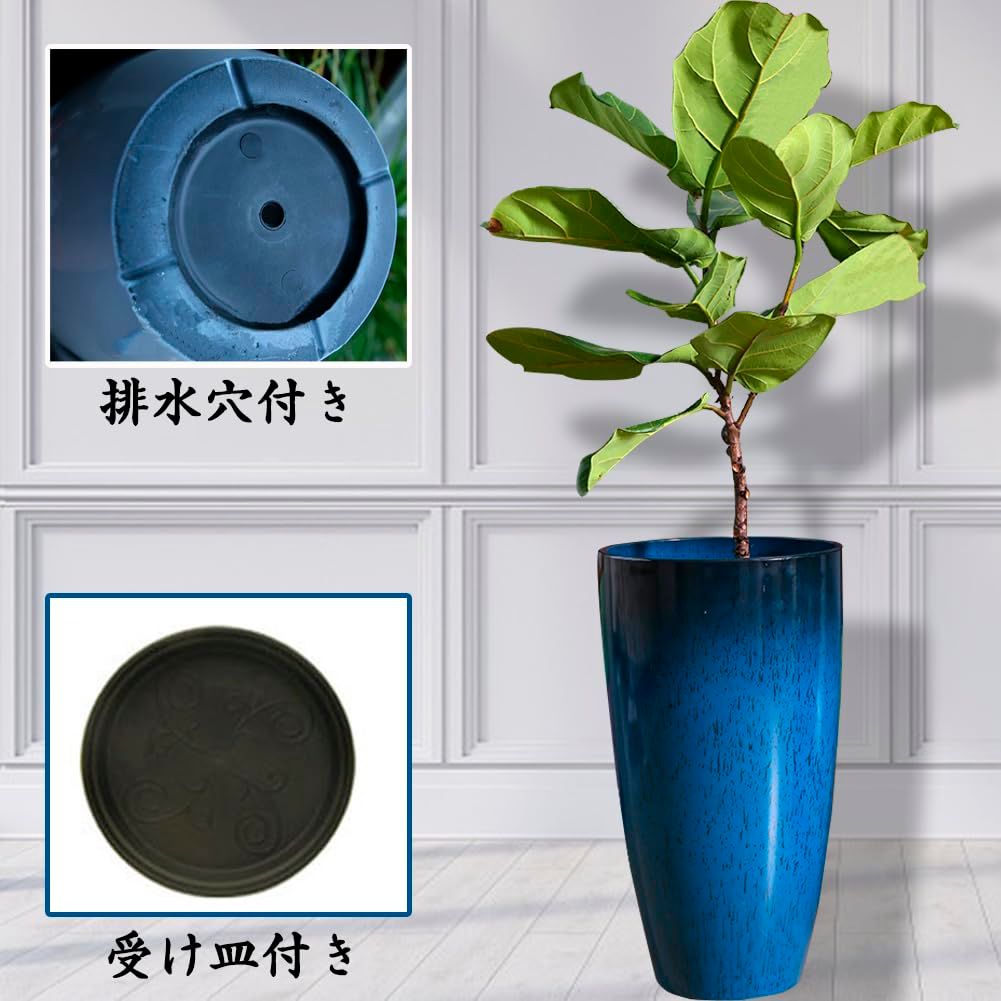 Glynislife 植木鉢 大型 おしゃれ プラスチック 軽量 受け皿付き 屋内 屋外用 高さ53.5 排水穴付き 植木鉢 花 栽培 プレゼント ギフト 母の日 観葉植物 鉢(陶器模様-ブルー 高さ約53.5外口径約30.5底径約18CM)