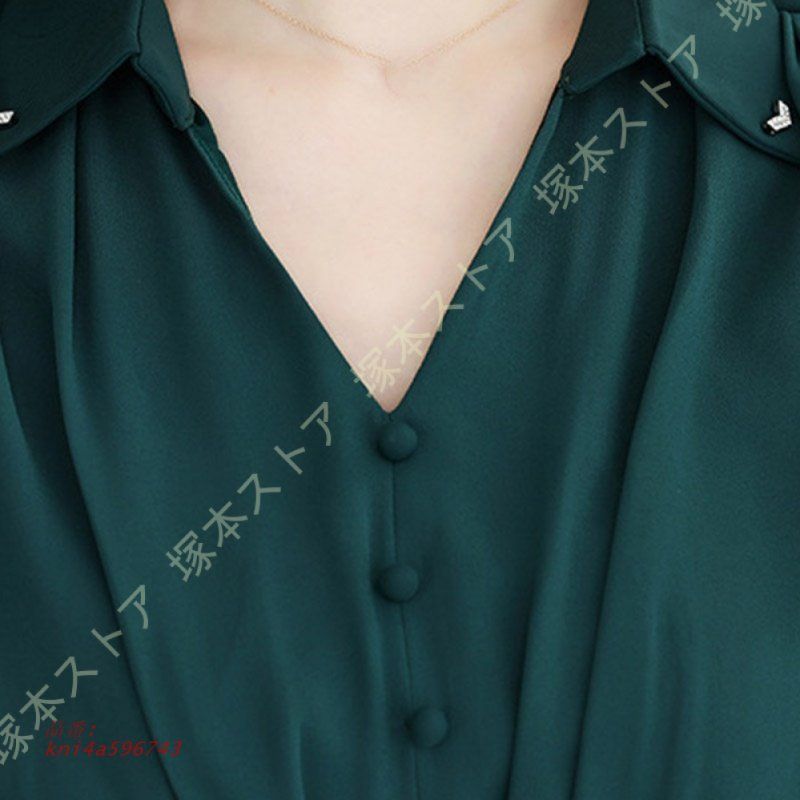 レディース パンツスーツ セットアップ 上下セット ブラウス ワイドパンツ ファッション エレ気質 Vネック 長袖 カジュアル 着痩せ 大きいサイズ kni 4 a 596743
