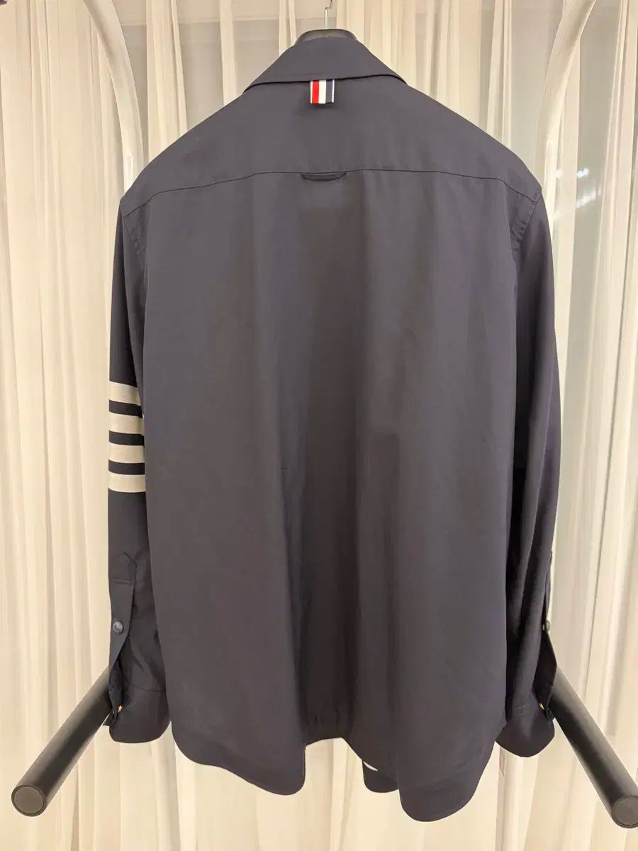 ゴールド ボタンで高級感があります。袖部分にはトム・ブラウン 特有の白 ストライプがあります。