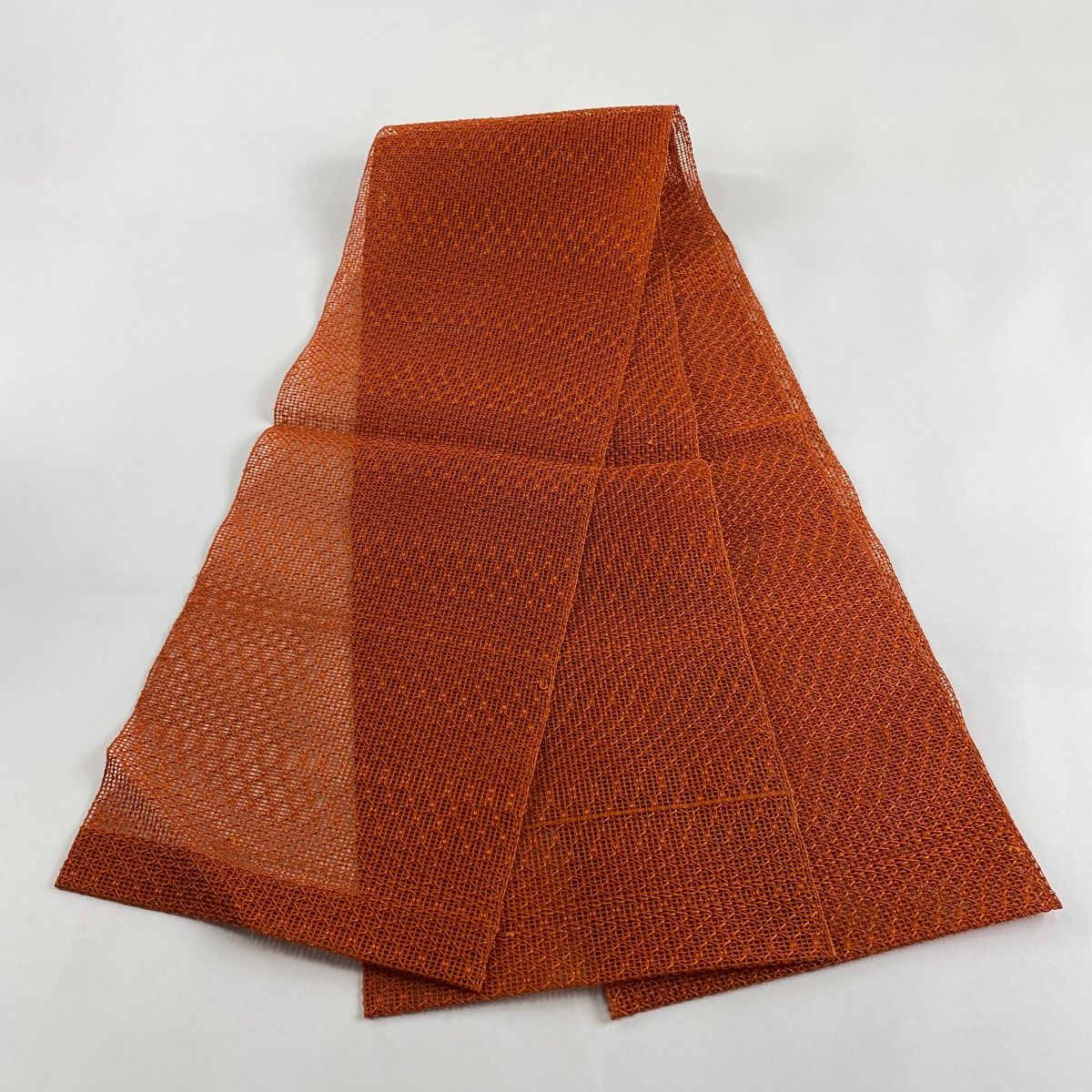 名古屋帯 秀品 夏帯 羅 八寸名古屋帯 トンネル仕立て 幾何学模様 オレンジ 正絹