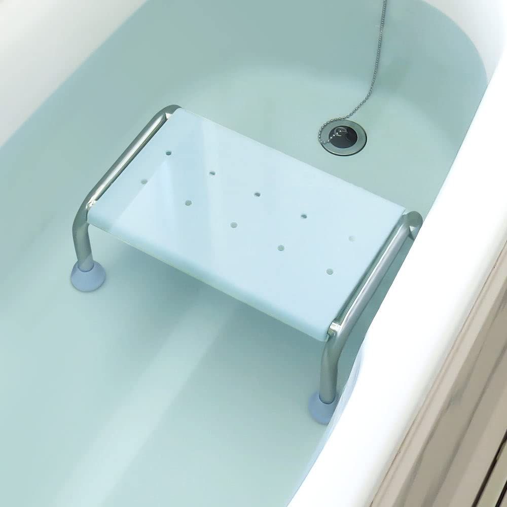 自重があり、滑りにくい吸盤付きなので、お湯の中でも浮かずに安定して使える浴槽台です。浴槽外でステップとして使用することもできます。