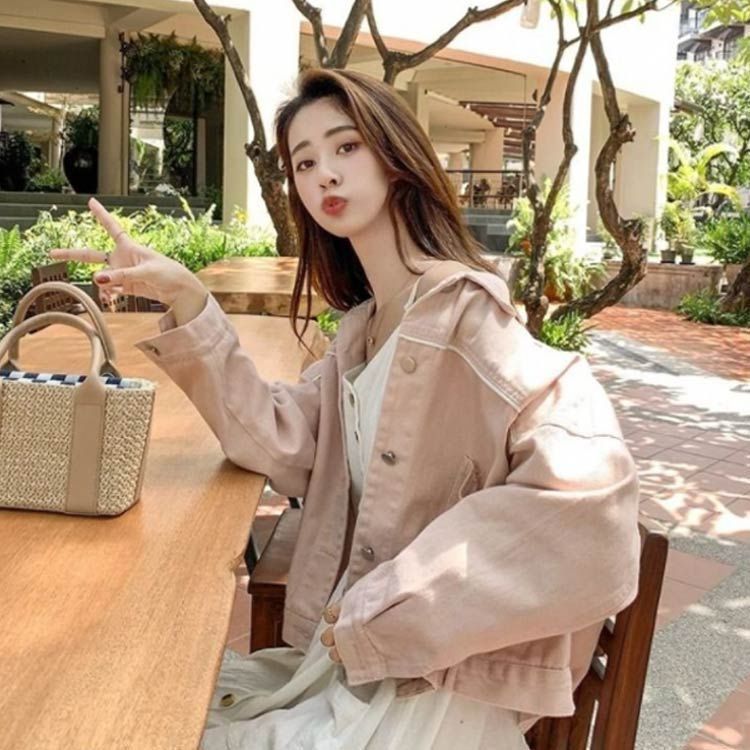 Gジャン ショート丈 レディース オーバーサイズ アウター ジャケット ピンク ライトアウター デニム ブルゾン ゆったり ジージャン 春アウター 秋 春 羽織り 長袖 ショートジャ dzdx 9722