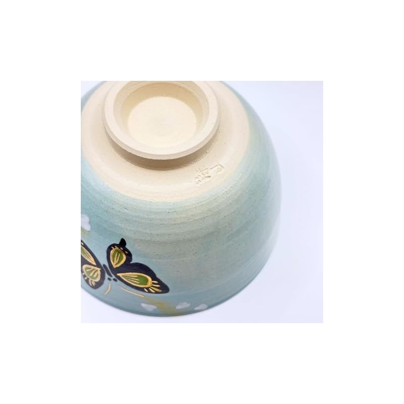 本作「黒蝶」は、水色の地に描かれた蝶が舞う姿が印象的で、強いコントラストが凛とした存在感を放ちます。抹茶の緑を一層鮮やかに引き立て、茶席を格調高く演出してくれます。
