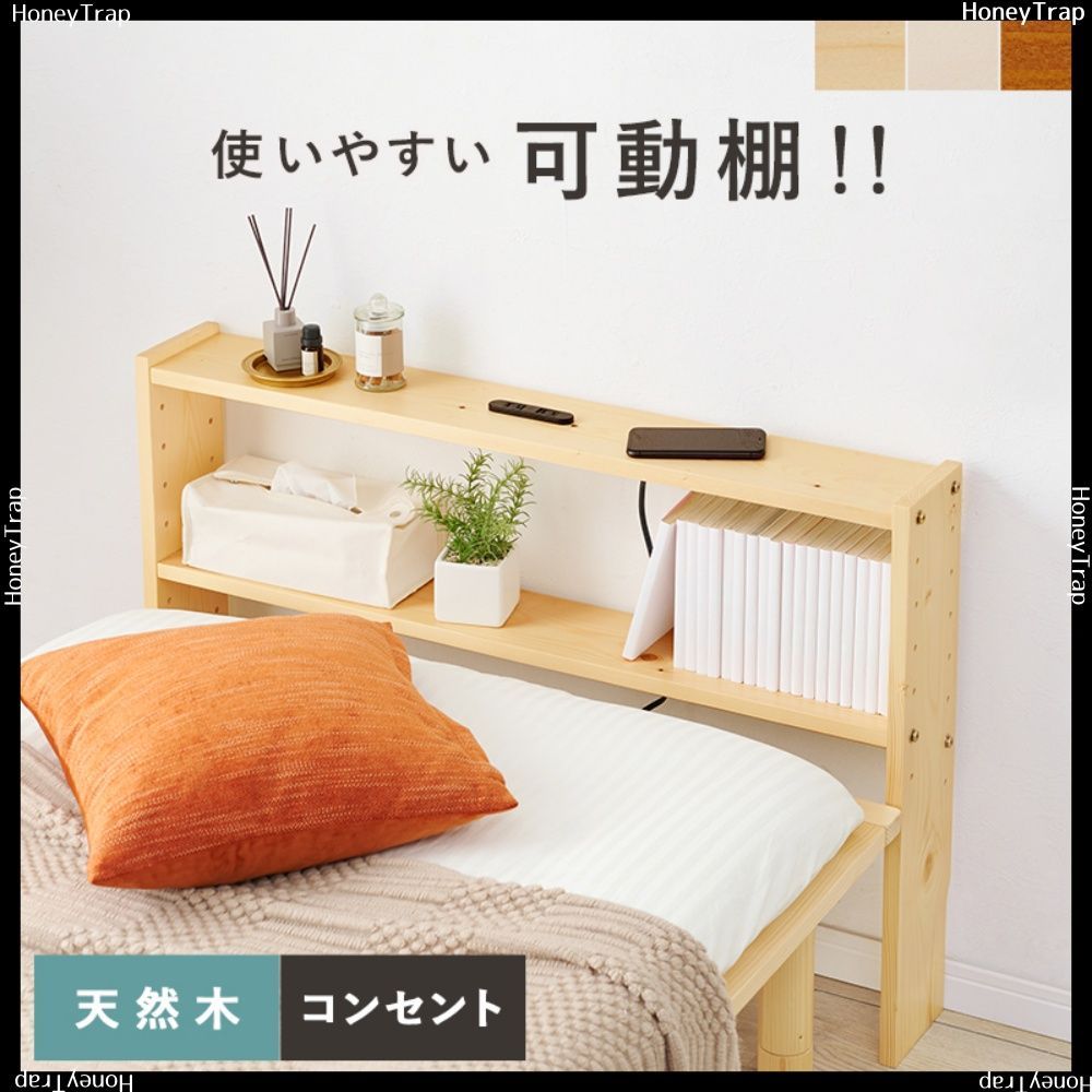 ベッドの枕側やサイドに置ける薄型収納。棚板の高さが変えられ、コンセント付きなので便利。