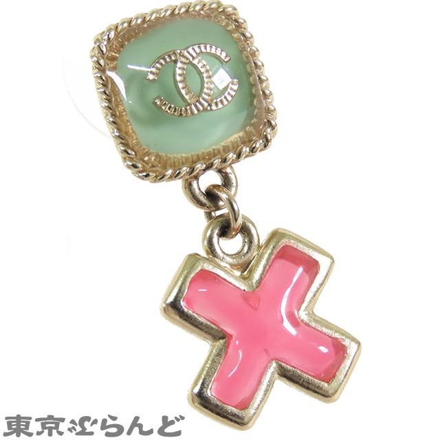 シャネル CHANEL ココマーク クロス ピアス ゴールドxグリーンxレッド メタル レジン 17 S GP イヤリング レディース