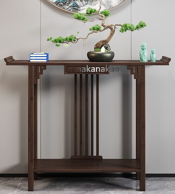 新中式玄関キャビネット現代シンプル玄関テーブル禅意応接間入門条案中堂供卓端景台狭款