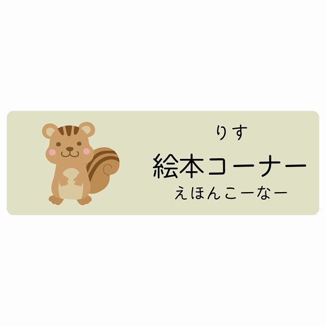 絵本コーナー りす サインステッカー シール 120 x 40 cm 長方形 子供も読めるふりがな入り 動物イラスト 小児科向け こども病院 幼稚園 児童施設