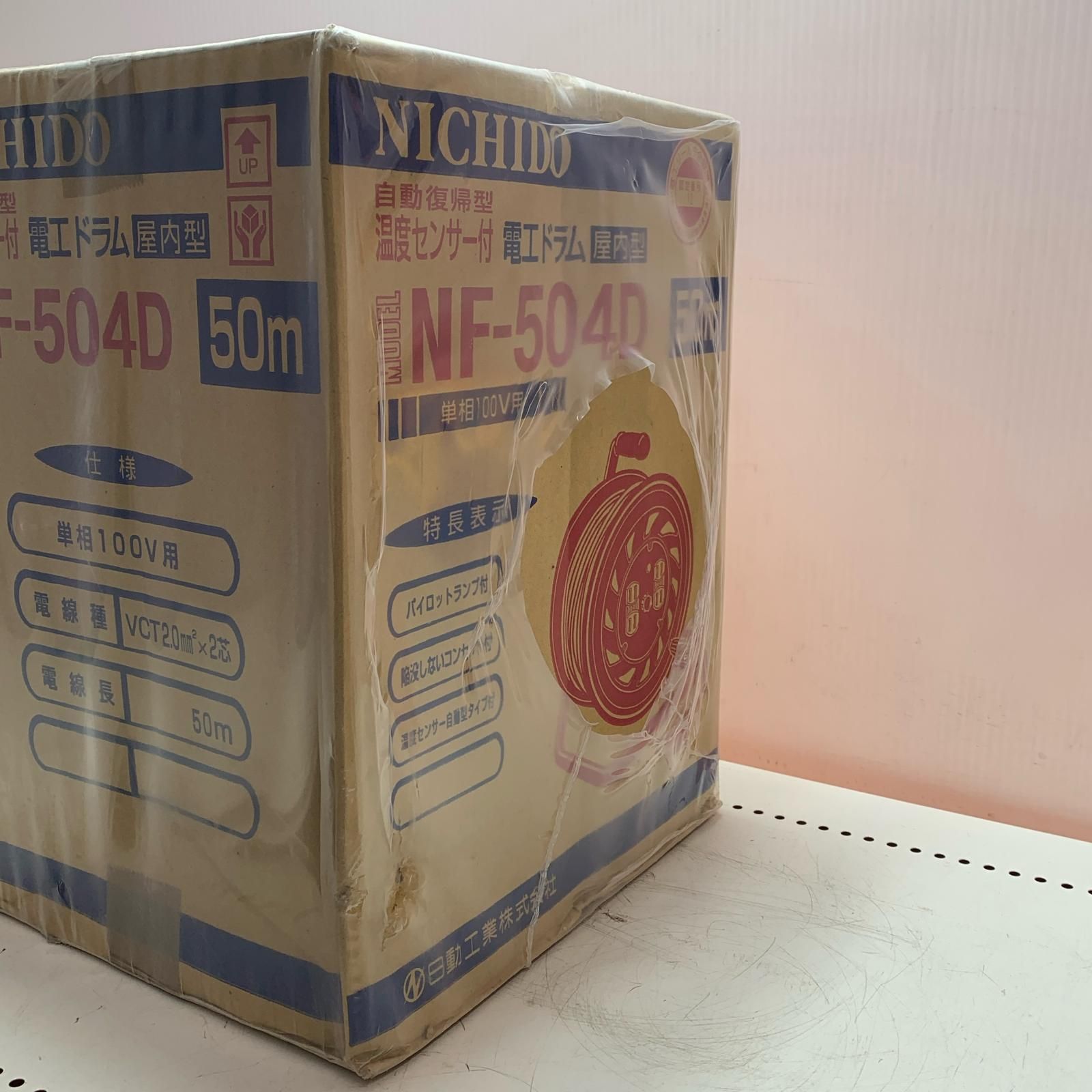 【商品名】新品 NICHIDO 自動復帰型温度センサー付電工ドラム(屋内型) 50m NF-504D