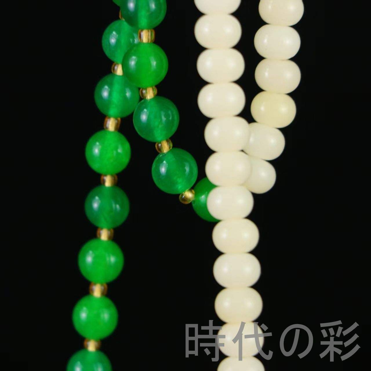 翡翠ネックレス(珠径8mm。清代宮廷御蔵の高氷翡翠を用い、純粋無瑕の質感を持ちます。透明感に優れ、首元を華やかに彩る骨董首飾りです。保存状態も良好です。