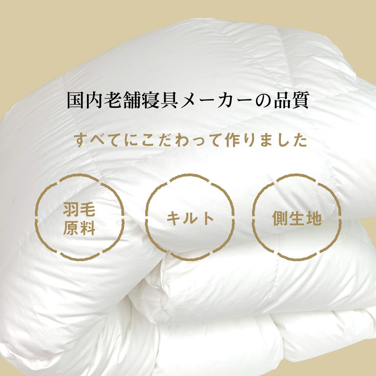 高級寝具ブランドにも卸売をしている、国内工場生産の信頼の品質です。