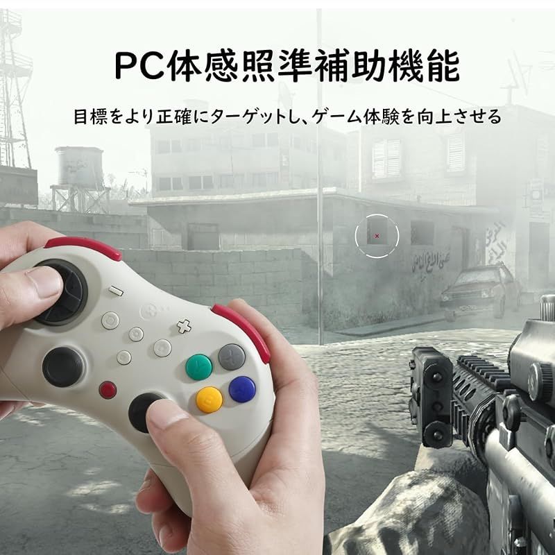 【自動連射機能・8方向十字キー・ジャイロ搭載】十字キーは4方向に設定でき、従来の十字キーで発生しがちな誤入力問題を完全に解消します。さらに丸い十字キーはSSサンドイッチ構造を搭載し、入力精度と反発速度を向上させ、格闘ゲームのコマンド入力に最適化です。高感度6軸モーションセンサーを採用し、特許取得済みのPC体感照準補助技術が細かなエイムをサポートしてくれ、撃ち合いを優位に進められるだけでなく、より直感的なゲームプレイを実現します。FPS・TPSで素早い操作をしたい人におすすめです。AUTO全自動&TURBO半自動連射機能を搭載、シューティングやアクションゲームの高速操作を快適に出来ます。