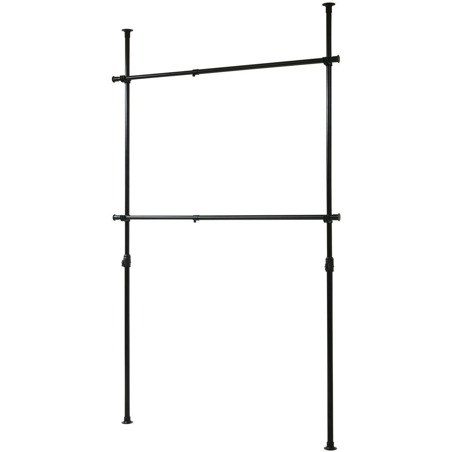 山善 突っ張り ハンガーラック 衣類収納 幅166cm 耐荷重60kg 2段 たっぷり収納 たて・よこ伸縮 ひっかけ棒付属 かんたん設置 組立品 ブラック WJ-775(BK)