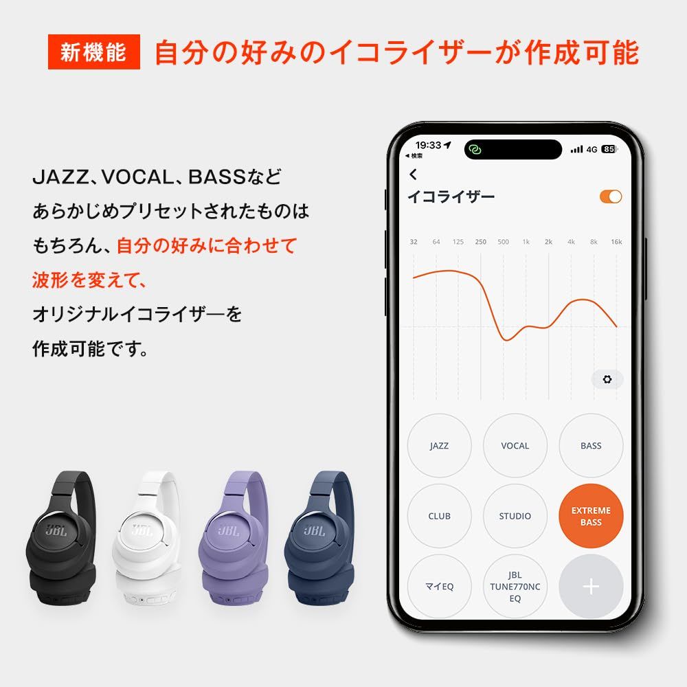 JBL TUNE 770 NC ワイヤレスヘッドホン オーバーイヤー ノイズキャンセリング アプリ対応 マルチポイント 40 mmドライバー ブルー