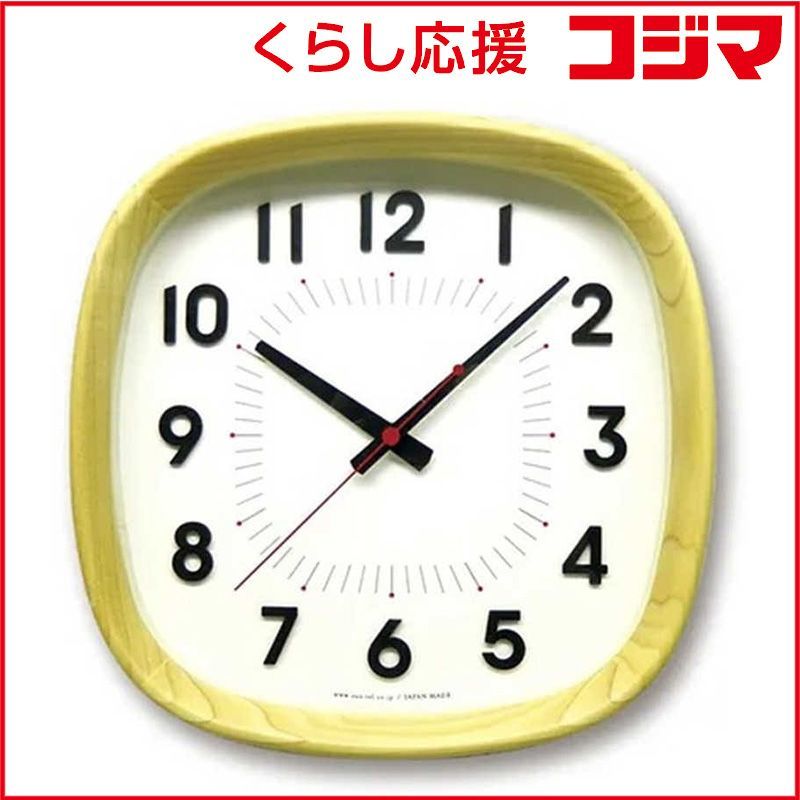 昔よく見かけた四角いプラスチックの掛け時計を参考にデザインされた木製インテリア掛け時計。