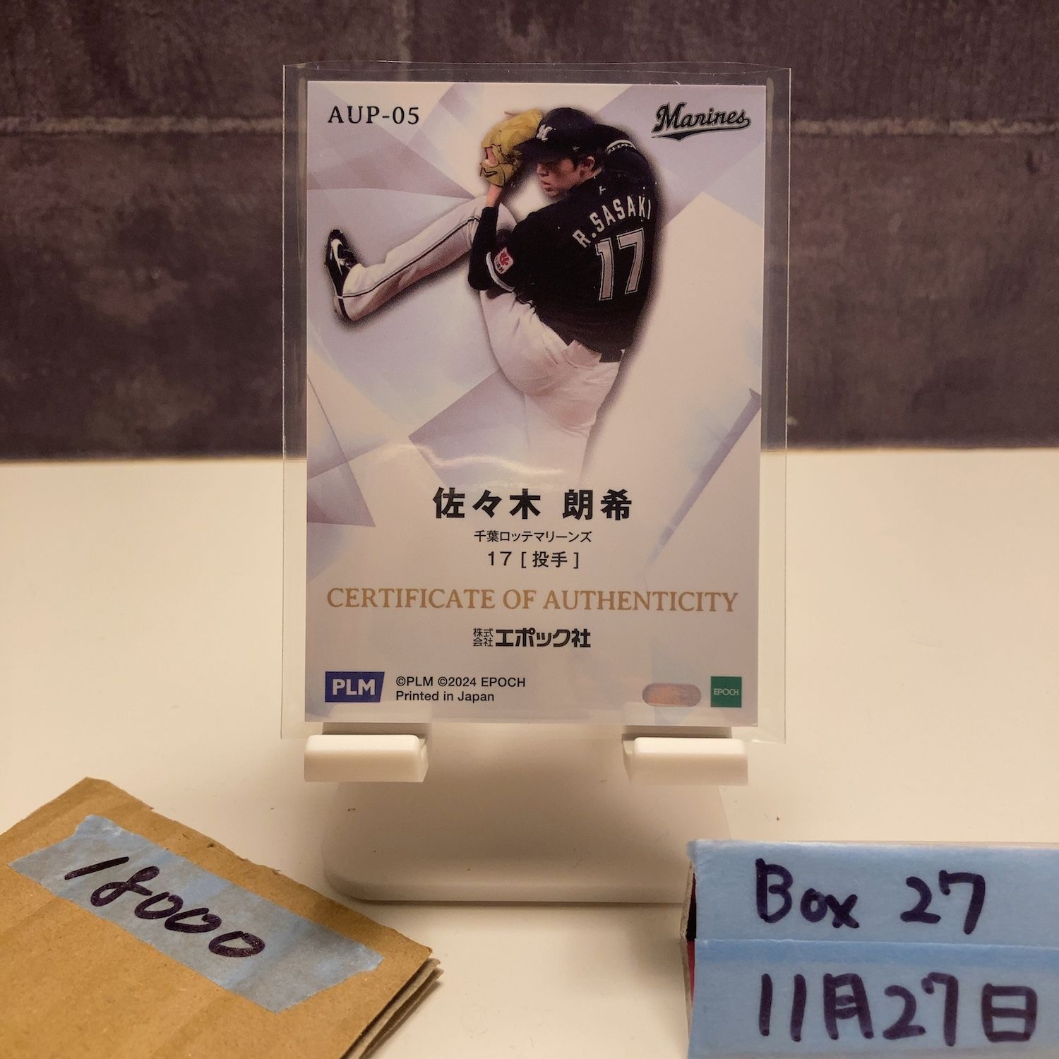 2024 EPOCH Premier Edition 佐々木朗希 14/25 千葉ロッテマリーンズ Pacific League Uniform パッチ
