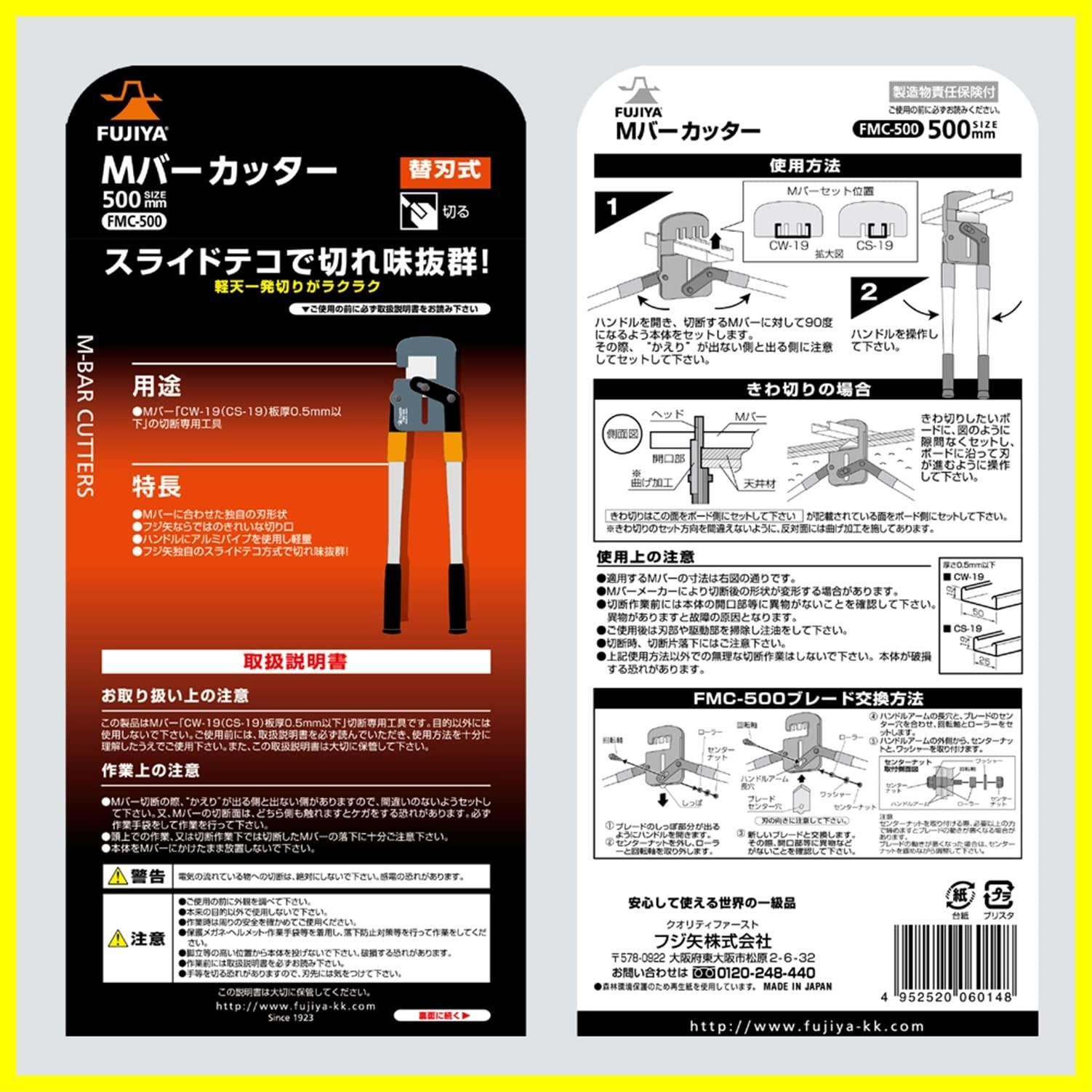 フジ矢(Fujiya) Mバーカッター (軽量アルミハンドル) 軽天切断用 FMC-500
