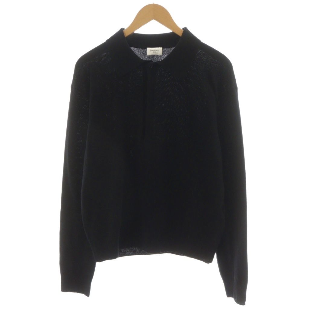 サンローラン パリ SAINT LAURENT PARIS ニットポロシャツ 長袖 ウール M 黒 ブラック 817251 AN 46