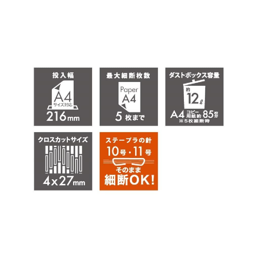 ●ダストボックス容量:約12リットル(A4コピー用紙 約85枚/5枚細断時)
