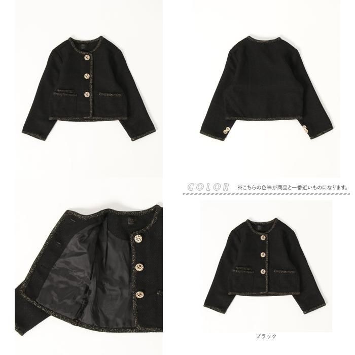 ブラック 150 cm ペアーズツイードジャケット キッズ ジャケット 女の子 フォーマル ツイードジャケット キッズジャケット ノー 黒 ゴールド おしゃれ お呼ばれ 入園式 卒園式 入学式 卒業式