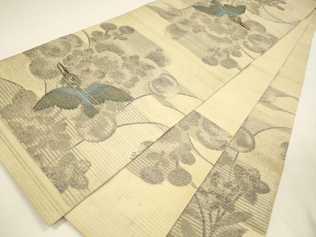 平和屋着物 夏物 アンティーク 大正ロマン 丸帯 引き抜き帯 花鳥文 銀糸 正絹 cm