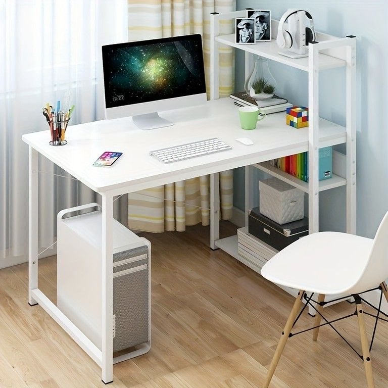 組立簡単&多色展開 幅100 cm シンプルデスク 学習机 パソコンデスク 本棚付き 省スペース 省スペース収納 学生用 寝室用 勉強机 学習デスク 作業台 ワークデスク ホワイト