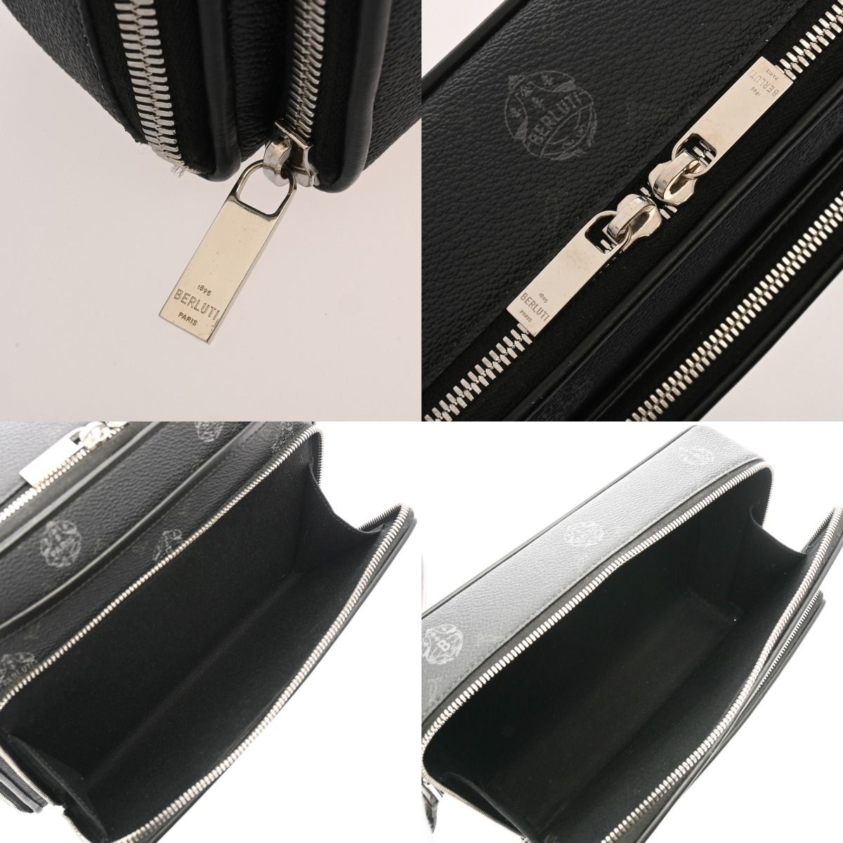 ベルルッティ クレストマイルズ MM ブラック メンズ コーティングキャンバス レザー ハンドバッグ