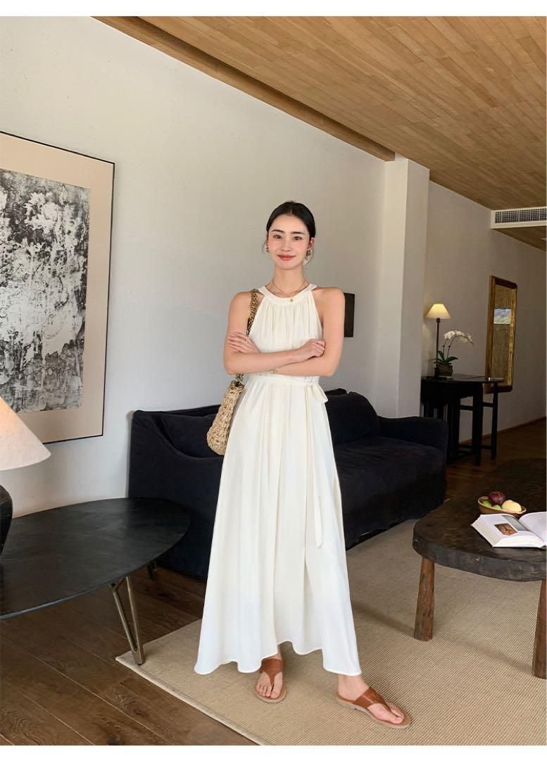 春のフレンチ風ホルターロングワンピース モテ服高見えデートにも最適