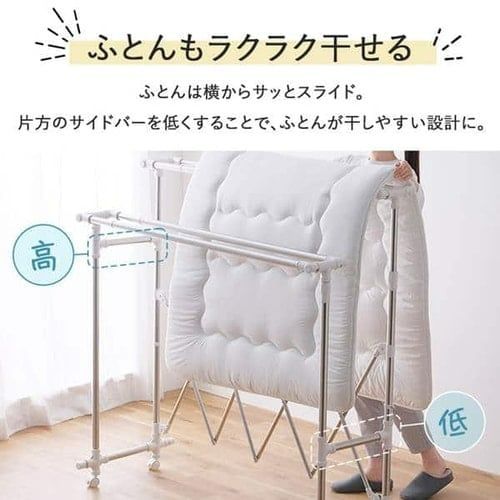 片側のサイドバーが低い位置にあり、布団を横からスライドさせて干すことができます。