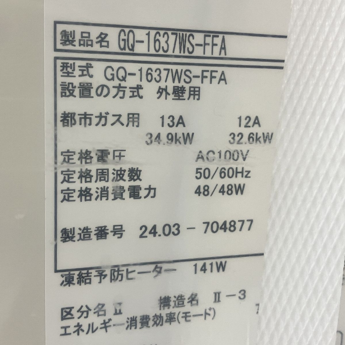 こちらは「NORITZ GQ-1637WS-FFA ガス給湯器 12A 13A 都市ガス 屋内設置形 2024年製 家電 未使用 」でございます。
