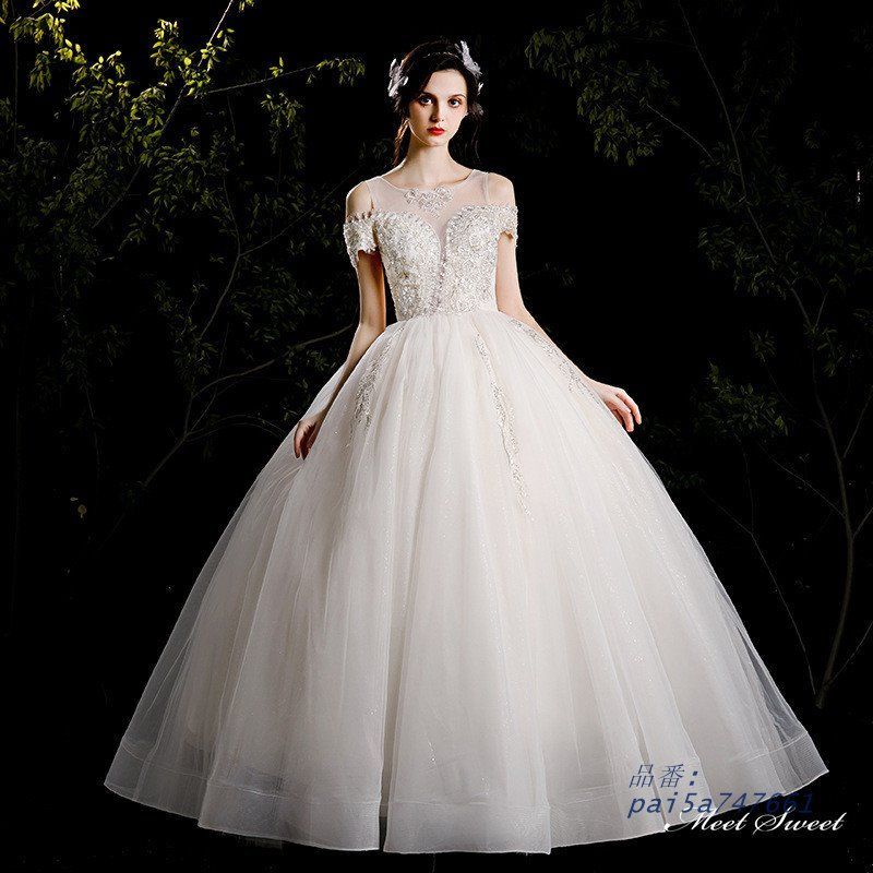 ウェディングドレス ロングドレス プリンセスラインドレス オフショルダー 二次会 結婚式 チュール 前撮り 挙式 ウエディングドレス ブライダル 花嫁 pai 5 a 747661