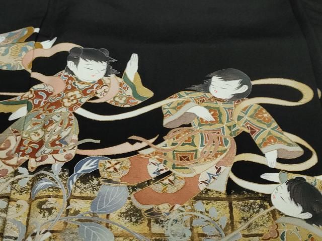 平和屋着物 金彩友禅作家 金彩の魔術師 堀省平 金煌織 黒留袖 童子遊び 金銀彩 正絹 ud